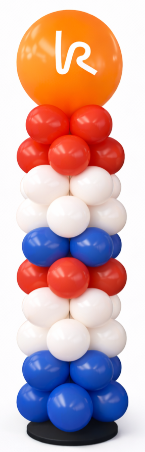 Deze ballonpilaar van latex ballonnen is een veelzijdige en feestelijke eyecatcher voor openingen, verjaardagen, evenementen, beurzen en feesten. De pilaar wordt opgebouwd uit stevige latex ballonnen in een strak of speels patroon en afgewerkt met een topballon in een kleur naar keuze.